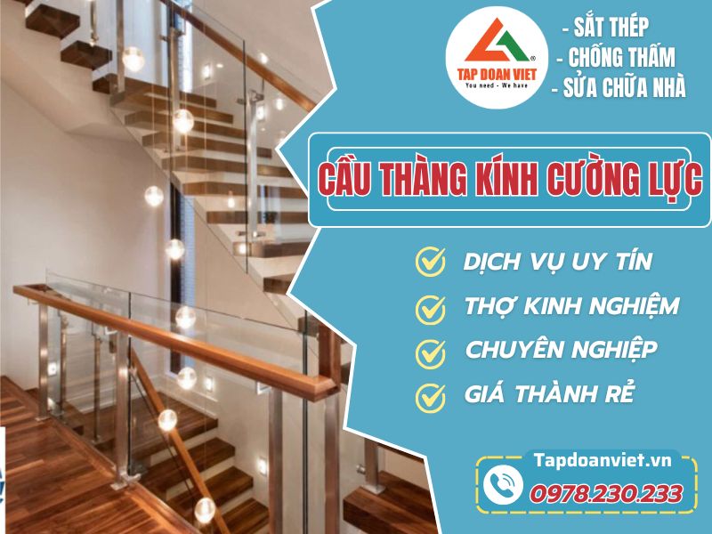 Một trong những xu hướng thiết kế nội thất hiện đại đó là lắp đặt cầu thang kính cường lực. Tập Đoàn Việt là đơn vị hàng đầu trong lĩnh vực thi công cầu thang bằng kính cường lực. Chúng tôi cam kết mang tới cho khách hàng những dịch vụ cao cấp nhất!