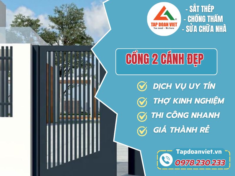 Cổng 2 cánh đẹp không chỉ là lối ra vào mà còn tôn lên nét đẹp cho tổng thể ngôi nhà. Để có chiếc cổng ưng ý bạn hãy lựa chọn đội ngũ thi công chuyên nghiệp. Nhấc máy và gọi tới Hotline 0978.230.233 hoặc truy cập vào baotriso1.vn để được tư vấn. Tập Đoàn Việt luôn sẵn sàng lắng nghe và giải đáp mọi thắc mắc của bạn. Đồng hành cùng chúng tôi để kiến tạo không gian sống hoàn hảo bạn nhé!