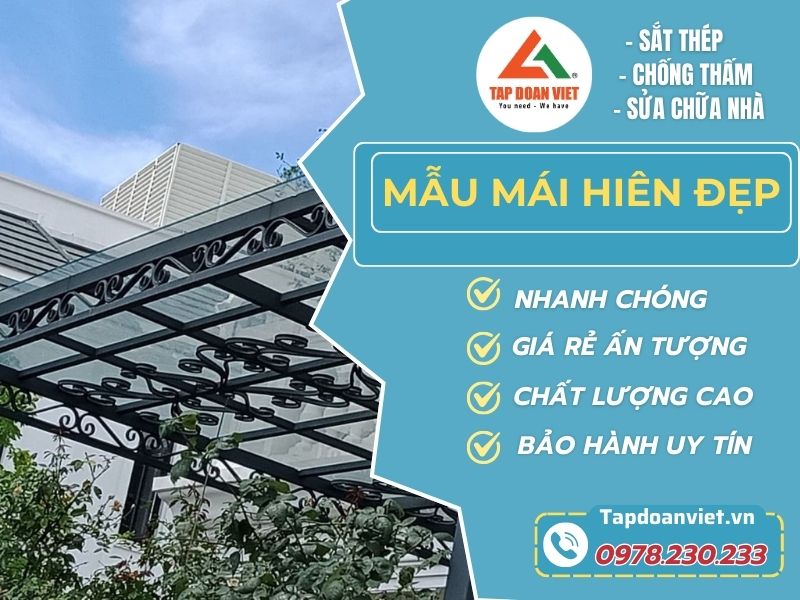 Sở hữu mẫu mái hiên đẹp là phương án tối ưu để nâng cao tính thẩm mỹ cho công trình. Các loại mái hiên kính đang trở thành xu hướng lựa chọn của nhiều khách hàng. Tập Đoàn Việt là đơn vị chuyên thi công, lắp đặt nguyên vật liệu đặc biệt này. Chúng tôi đảm bảo sẽ mang lại cho khách hàng những sản phẩm chất lượng, giá tốt.